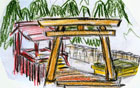 公園北に位置するお旅所は、神様(スサノオノミコト)が祭り見物する場所。運気が集まっている!!