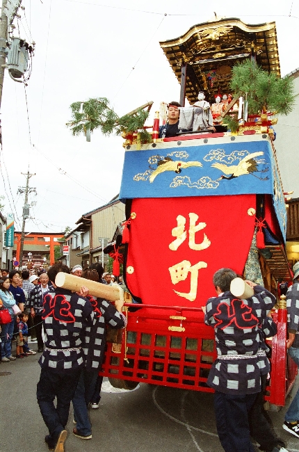 朱塗りの高欄は、津島では北町車だけです。朱塗りの輪懸・幕とともに鮮やかです。山車・からくりは文化文政年間(1804~1840)に造られました。